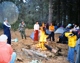 Confraternidad Nevado de Colima, 3-Feb-2005, La fogata alegra el campamento.