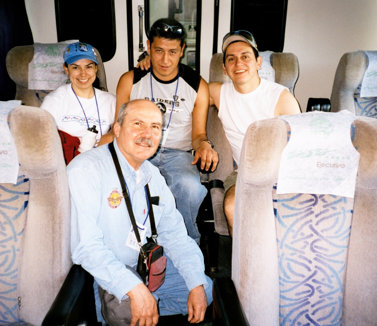 Confraternidad Nevado de Colima, 3-Feb-2005, Karla, José Luján, Julio Hdz. y Eduardo Verduzco nos disponemos a iniciar el regreso a Monterrey.
