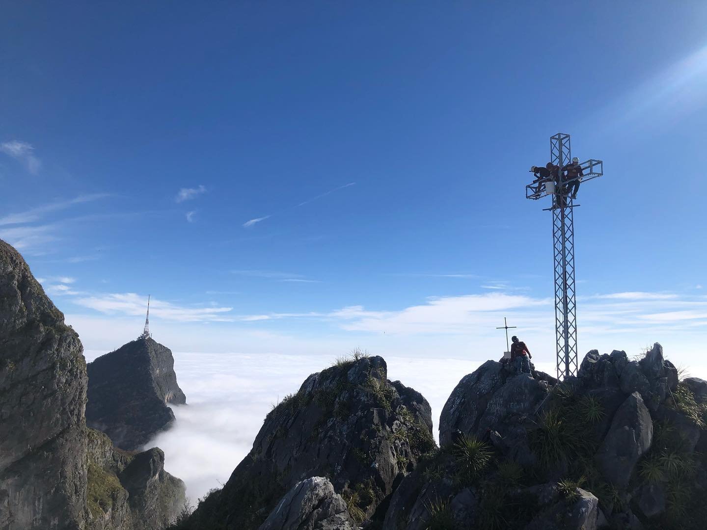 14-Mzo-21 El equipo del Domingo, llevando provisiones y las últimas piezas de la Cruz tuvo esta espectacular vista de la nueva Cruz del Montañista. 14-Mzo-21 El equipo del Domingo, llevando provisiones y las últimas piezas de la Cruz tuvo esta espectacular vista de la nueva Cruz del Montañista 14-Mzo-21 - Los trabajos vistos desde la base. 14-Mzo-21 Nuestra nueva Cruz del montañista recibiendo los últimos toques. 14-Mzo-21 La nueva Cruz del Montañista, orgullo Cóndor ya es una realidad. La nueva placa que llevará nuestra gran Cruz, emblema de nuestro querido club. Una placa que se muestra con mucho orgullo, como prueba de que unidos podemos lograr cualquier empresa por dificil que parezca. Instalando la nueva placa. Nuestra bandera ondeando orgullosa, engalanando la ocasión.