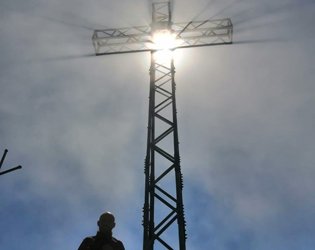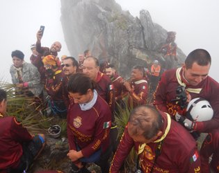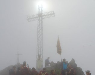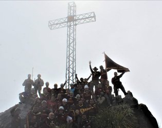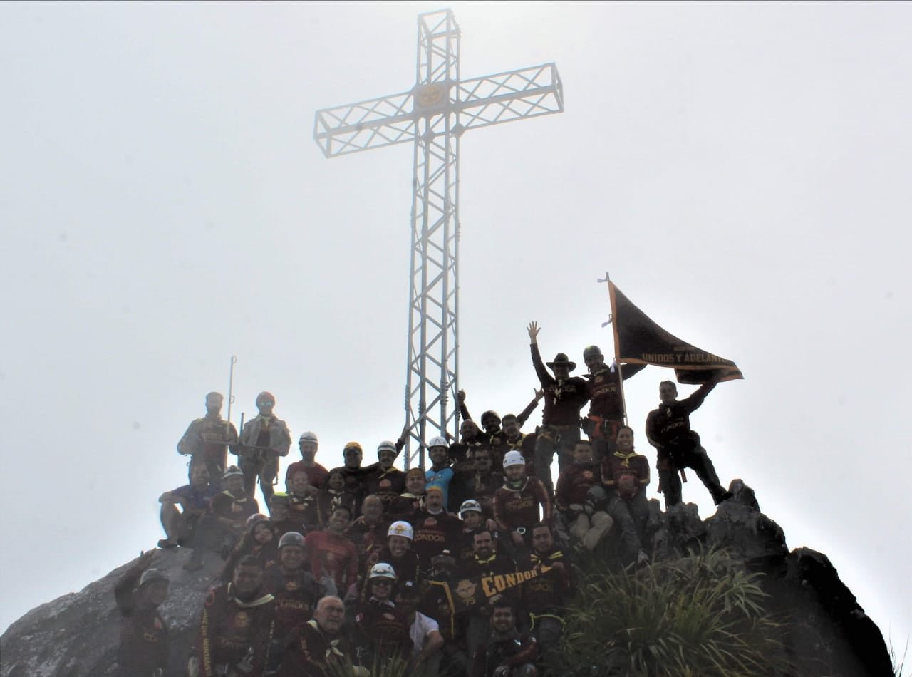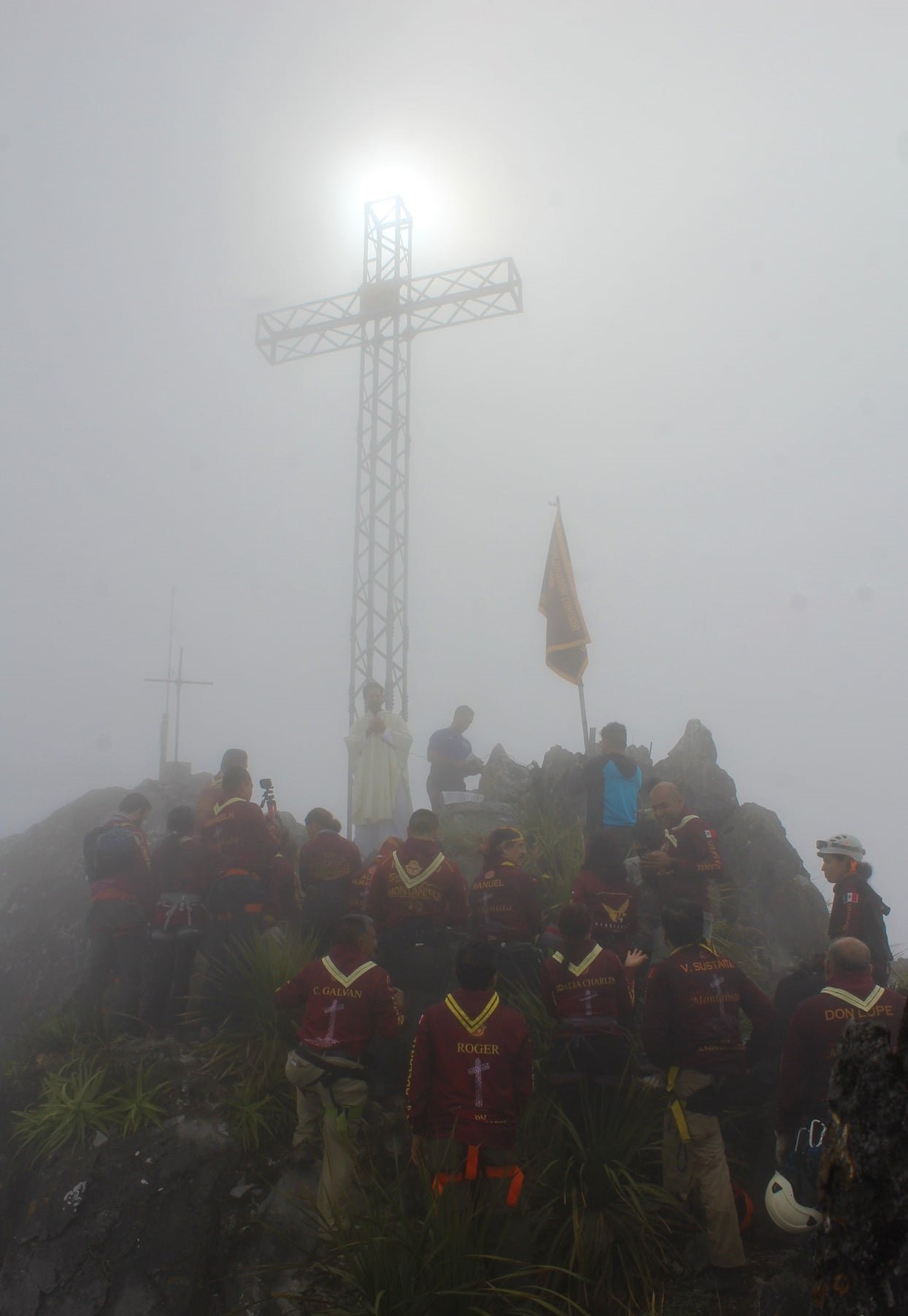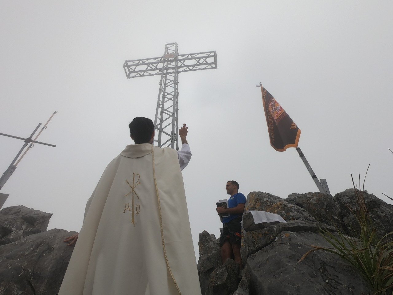 El Padre montañista Alejandro Beltrán Garza bendiciendo la Cruz, asistido por el padre Guillermo Camilo Karam.