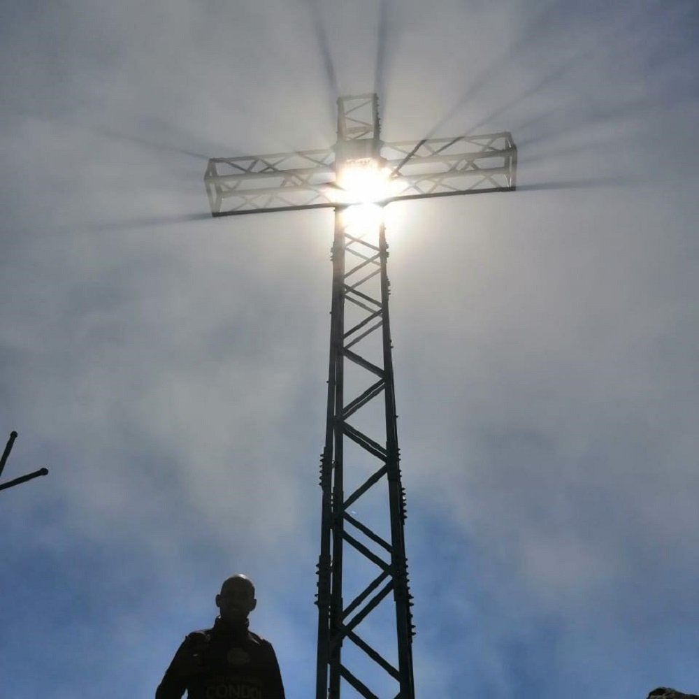 Emmanuel Moreno, Presidente del comité de la Cruz en esta gran toma con la majestuosa cruz de fondo.