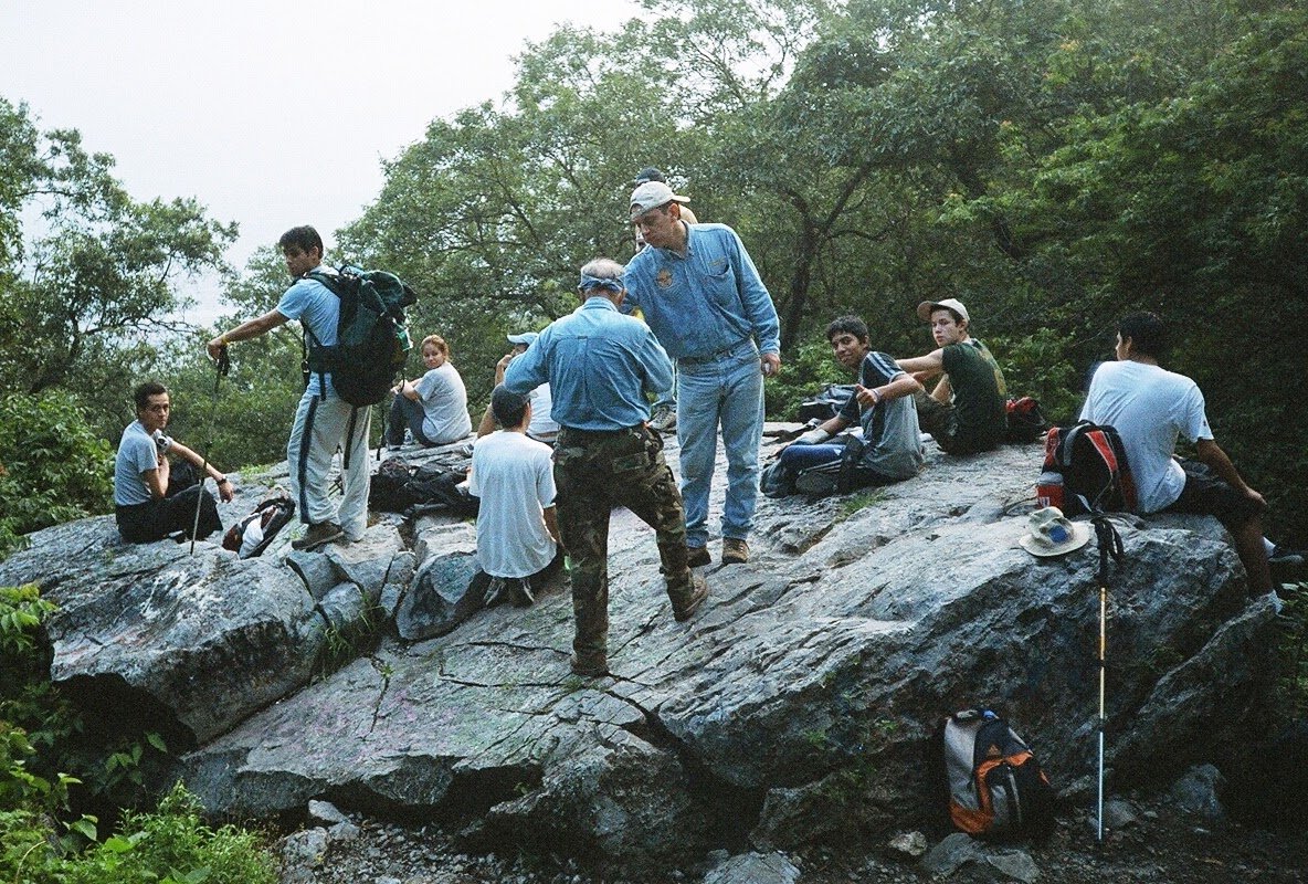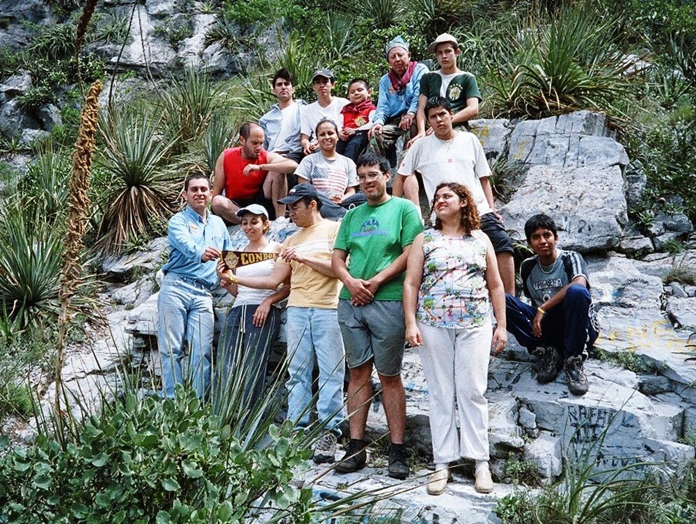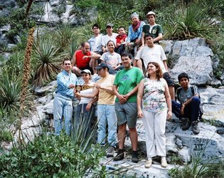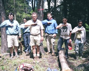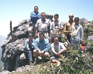 Cerro Agujerado, 27-Ago-2005, Eduardo Verduzco, Jesús Elizondo y Jesús Cedillo. Al frente, Alfonso López.
