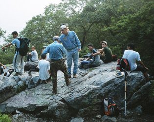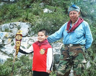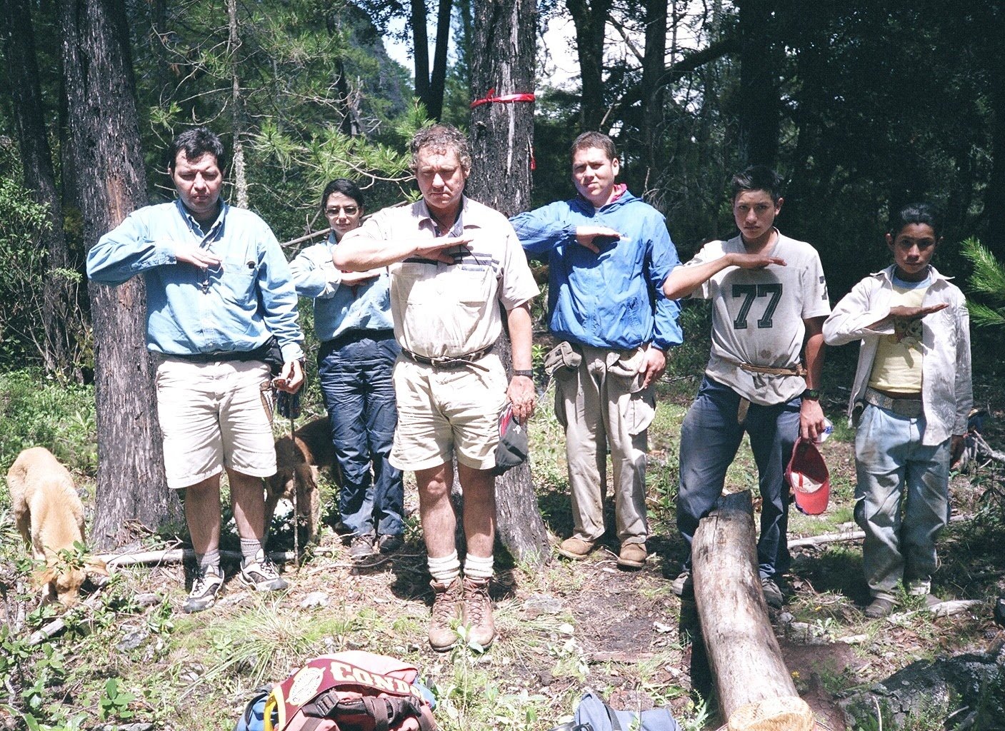 Cerro de la Luz, Sierra de Xilitla, 3-Jul-2005, Tradicional saludo al banderín.