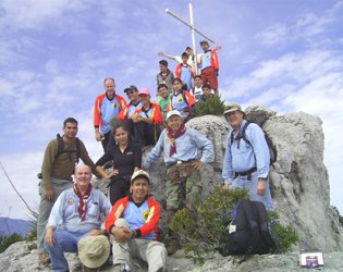 La Eme, 1-Oct-2006, Cumbre, Excursión en confraternidad con el Green Team. 1a fila 1 Eduardo Verduzco, 2 Israel Montoya GT. 2a fila 1 Armando Valdez, 2 Rocío GT, 3 Jesús Cedillo, 4 Jorge Belden.