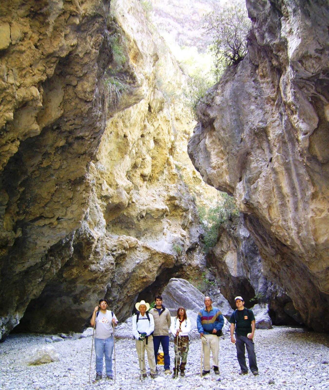 Cañón de las escaleras, 1-Mzo-2007, Uno de los parajes más espectaculares del Cañón de Escaleras. Felipe, Muñoz, José Manuel, Maricruz, Castro y Julio.